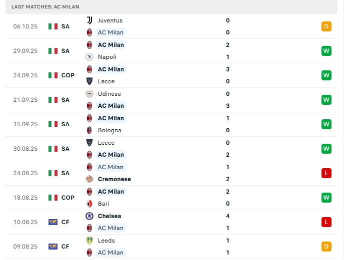 Phong độ thi đấu gần đây AC Milan vs Fiorentina
