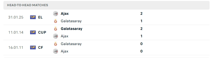 Phong độ thi đấu gần đây Ajax vs Galatasaray