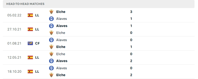 Những màn đụng độ giữa Alaves và Elche thường diễn ra chặt chẻ với ít bàn thắng, cụ thể 4/5 lần gặp nhau gần nhất của hai đội và 4/5 lần đón tiếp Elche trên sân nhà của Alaves khép lại không quá 2 lần lưới rung.