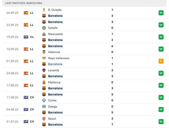 Barcelona có sự chuẩn bị tốt cho màn đụng độ PSG khi họ vừa có chiến thắng đầy ấn tượng 3-1 trước R. Oviedo, chiến thắng này là chiến thắng thứ 4 liên tiếp và nối dài trận bất bại thứ 12 liên tiếp, ở ngày ra quân của sân chơi Champions League họ cũng mang về 3 điểm khi đánh bại Newcastle với tỷ số 2-1, phong độ trên sân nhà của Barcelona ấn tượng với 4 chiến thắng, 1 thất bại sau 5 trận đấu.