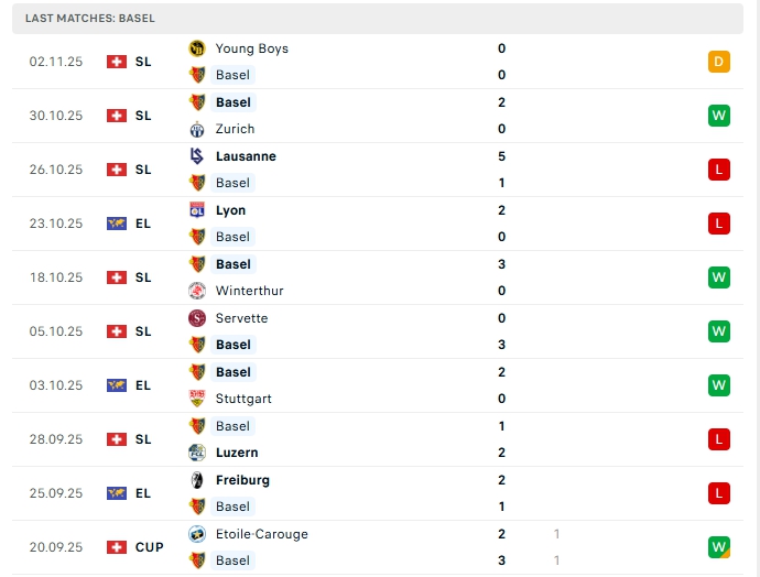 Basel sau 3 lượt trận đại diện Thụy Sỹ có được 3 bàn thắng trong đó hàng thủ nhận 4 bàn thua, 2/3 trận đấu đó khép lại không quá 2 bàn thắng, trên sân nhà của mình ở 3/5 trận gần nhất cũng có kết quả tương tự, lối chơi của Balsel đang thiên về phòng thủ.