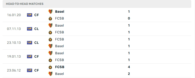 Những màn đụng độ giữa Basel và Steaua Bucuresti thường diễn ra chặt chẻ với ít bàn thắng được tạo ra, cụ thể ở 4/5 lần gặp nhau gần nhất của hai đội và cả 3 lần đón tiếp Steaua Bucuresti trên sân của Basel khép lại không quá 2 bàn.