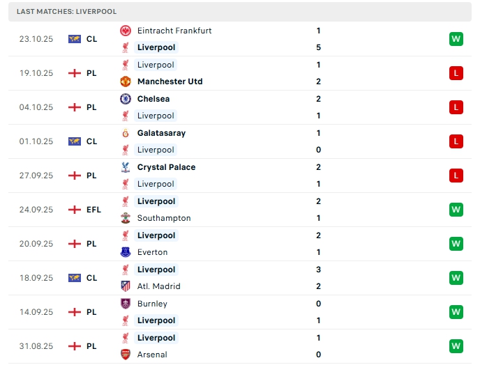 Liverpool ở 8 lượt trận đầu tiên đội bóng này có được 14 bàn thắng cùng hàng thủ nhận 11 bàn thua, 4/5 trận vừa qua của The Kop khép lại từ 3 bàn trở lên, khi thi đấu xa nhà ở 3/5 trận gần nhất cũng có kết quả tương tự.