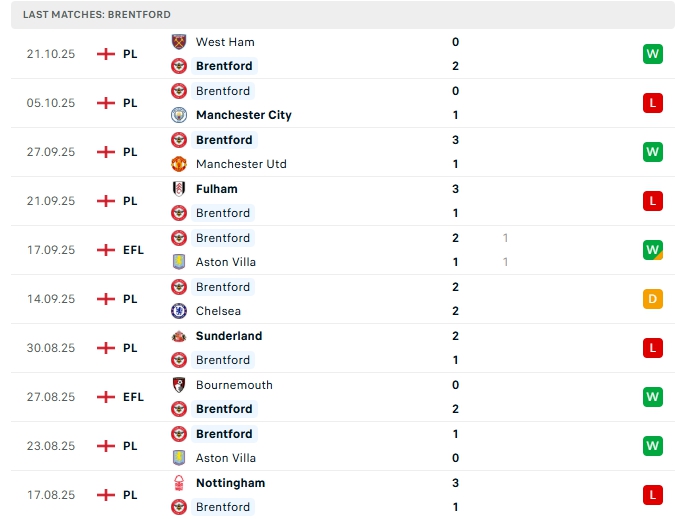 Brentford sau 8 lượt trận đầu tiên, hàng công của đội bóng này mang về 11 bàn thắng cùng hàng thủ nhận 12 bàn thua, 3/5 trận vừa qua của Bầy ong khép lại từ 3 bàn trở lên, trên sân nhà của mình ở 3/5 trận gần nhất cũng có kết quả tương tự, hàng công vẫn duy trì hiệu suất ghi bàn nhưng hàng thủ chơi tệ là điểm yếu của đội bóng này.