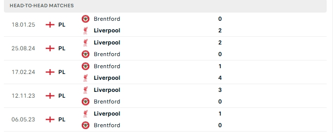 Quá khứ đối đầu Brentford vs Liverpool