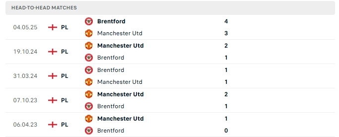 Những màn đụng độ giữa Brentford và Man Utd thường diễn ra hấp dẫn với nhiều bàn thắng được ghi, cụ thể ở 3/5 lần gặp nhau gần nhất và 3/5 lần đón tiếp Man Utd trên sân nhà của Brentford đều vượt mốc trên 3 bàn.