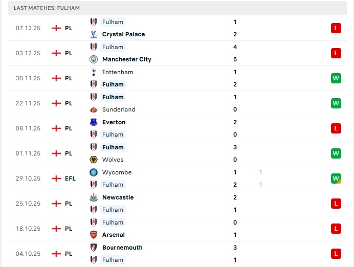 Fulham sau 15 trận đấu , hàng công chơi tốt khi mang về 20 bàn thắng, cùng hàng thủ nhận 24 bàn thua, khi xa nhà Fulham cũng thường nhập cuộc với sự chắc chắn, hàng công đang chơi không quá tốt sẻ khiến Fulham gặp khó khi xa nhà.