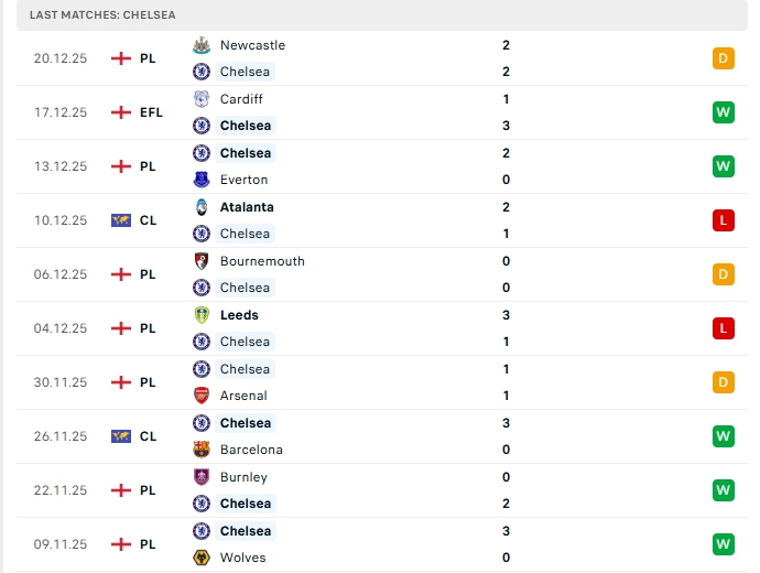 Phong độ thi đấu gần đây Chelsea vs Aston Villa