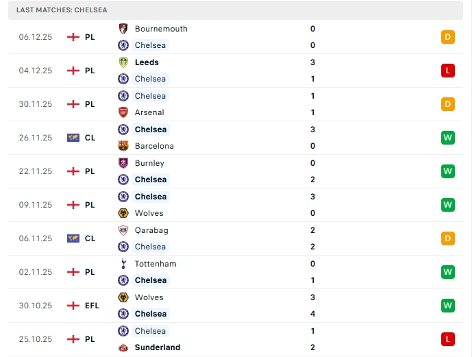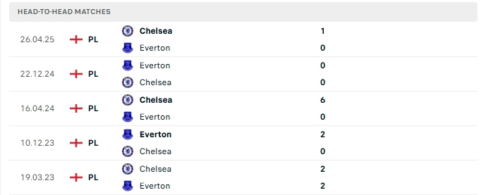 Phong độ thi đấu gần đây Chelsea vs Everton