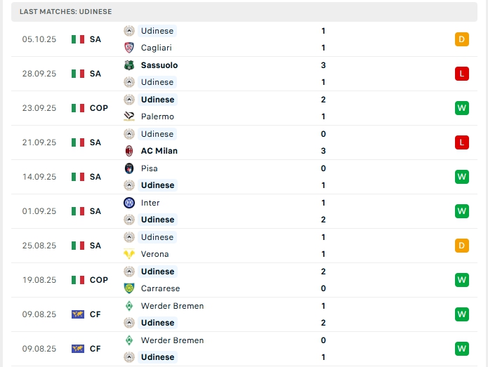 Phong độ thi đấu gần đây ACremonese vs Udinese