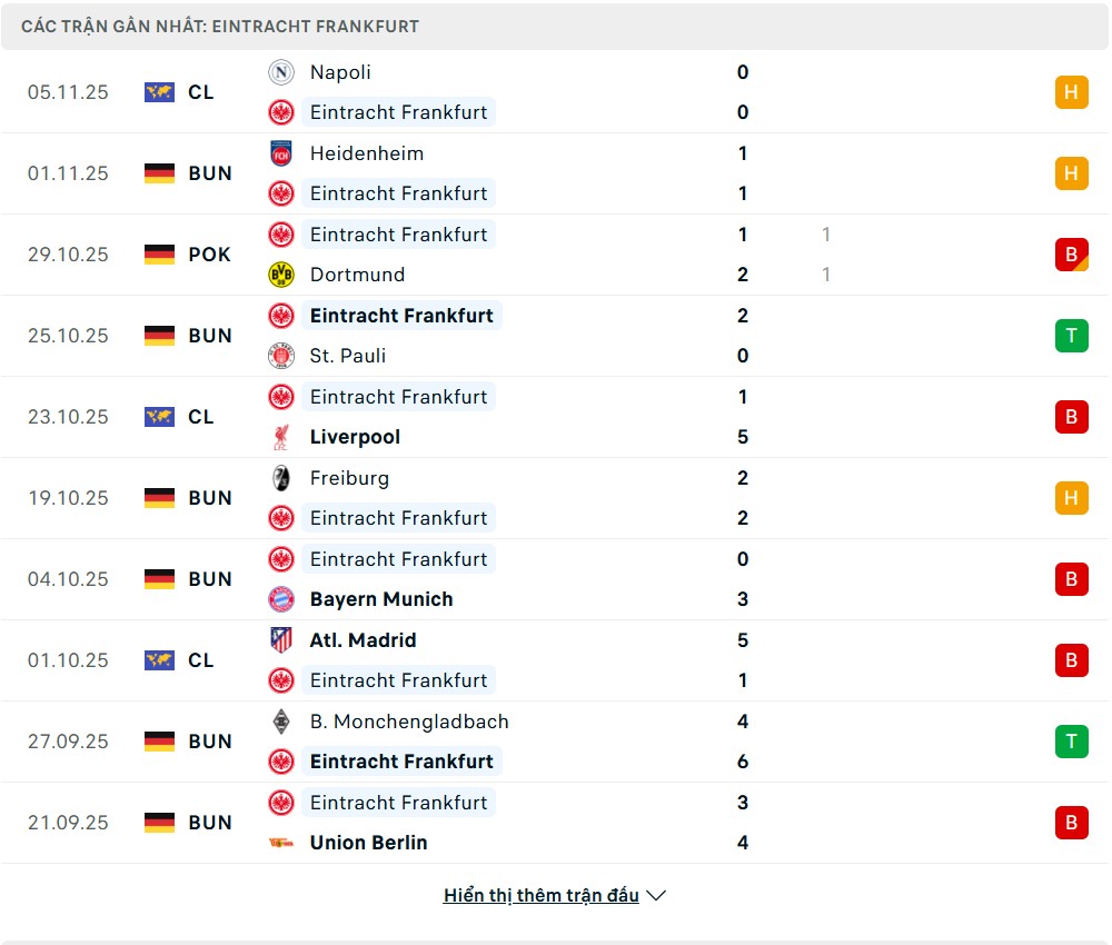 • Phong độ Eintracht Frankfurt