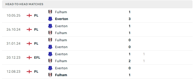 Quá khứ đối đầu Everton vs Fulham