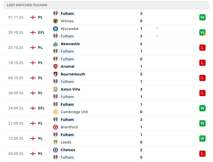 Fulham ở 10 lượt trận đầu tiên đội bóng này có được 12 bàn thắng cùng hàng thủ nhận 14 bàn thua, hàng thủ đang cần sớm khắc phục nếu không muốn bị các đối thủ dễ dàng khai thác, Fulham thường nhập cuộc chặt chẻ trong những trận cầu vừa qua.