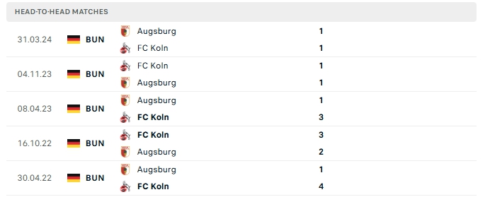 Những màn đụng độ giữa FC Koln và Augsburg thường diễn ra hấp dẫn với nhiều bàn thắng được tạo ra, cụ thể ở 3/5 lần gặp nhau gần nhất của hai đội khép lại từ 3 bàn trở lên, việc hàng công chơi tốt cùng hàng thủ thiếu chắc chắn là cơ sở để tin vào trận đấu bùng nổ bàn thắng.