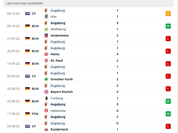 Phong độ thi đấu gần đây FC Koln vs Augsburg