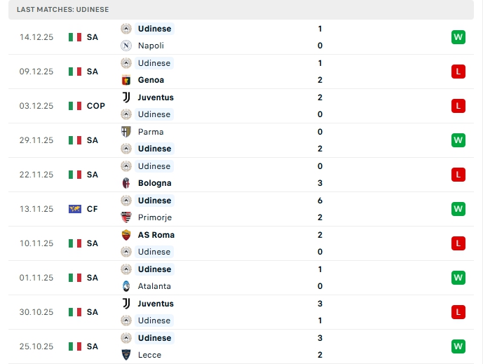 - Fiorentina 2-1 Udinese(Full-Time)
