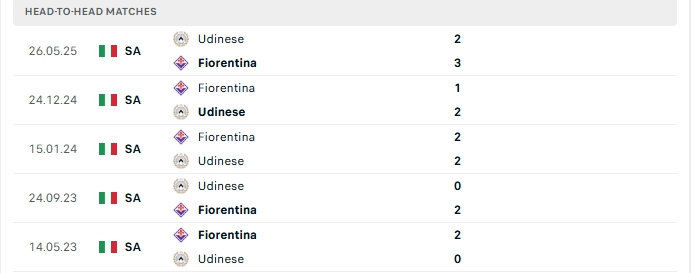 Những màn đụng độ giữa Fiorentina và Udinese thường diễn ra hấp dẫn với nhiều bàn thắng được tạo ra, cụ thể ở 3/5 lần gặp nhau gần nhất của hai đội và 4/5 lần đón tiếp Udinese trên sân của Fiorentina vượt mốc trên 3 bàn.