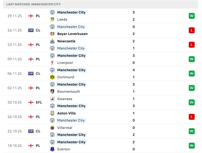 Man City ở 13 lượt trận đã qua đội bóng này có được 27 bàn thắng cùng hàng thủ nhận 12 bàn thua, 34/5 trận đấu vừa qua của Man City khép lại từ 3 bàn trở lên, khi thi đấu xa nhà ở 2/3 trận vừa qua của The Citizens khép lại trên 3 bàn.