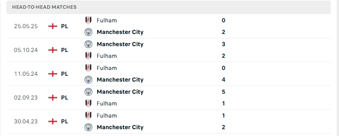 Những màn đụng độ giữa Fulham và Man City thường diễn ra hấp dẫn với nhiều bàn thắng được tạo ra, 4/5 lần gặp nhau gần nhất của hai đội và 3/5 lần đón tiếp Man City trên sân của Fulham vượt mốc trên 3 bàn.