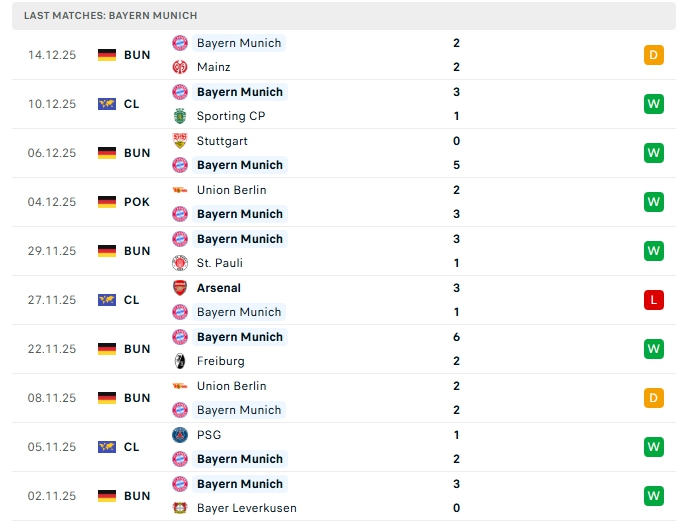 • Phong độ Bayern Munich