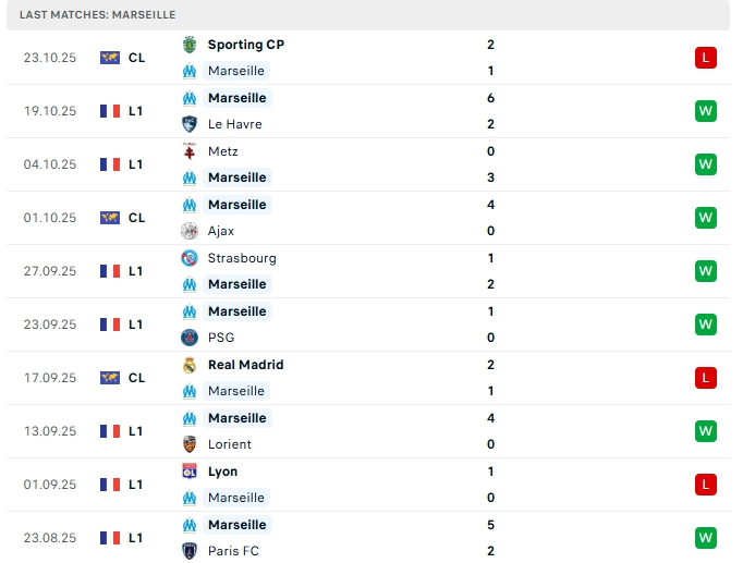 Phong độ thi đấu gần đây Lens vs Marseille