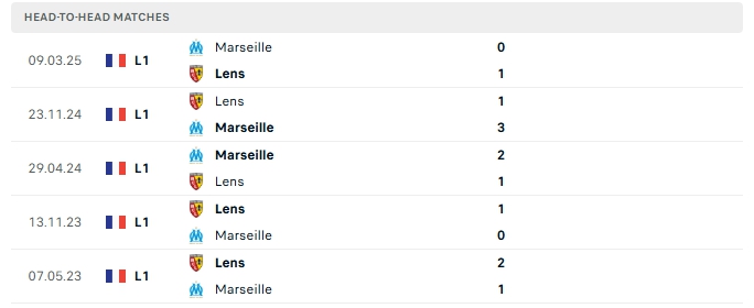Những màn đụng độ giữa Lens và Marseille thường diễn ra hấp dẫn với nhiều bàn thắng được tạo ra, cụ thể ở 3/5 lần gặp nhau gần nhất của hai đội và 3/5 lần đón tiếp Marseille trên sân của Lens vượt mốc trên 3 bàn.
