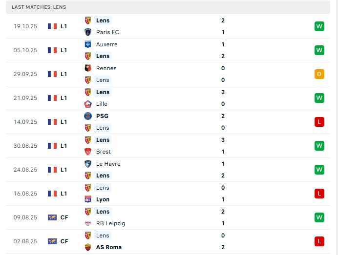 Lens sau 8 trận đấu họ có được 5 chiến thắng và 1 hòa và 2 thất bại, mang về 16 điểm và đang xếp ở vị trí thứ 4 trên BXH, Lens vừa trải qua chuỗi 4 trận bất bại, trong đó có 3 chiến thắng và 1 hòa, trên sân nhà của mình Lens cũng chơi tốt với chuỗi 3 trận toàn thắng liên tiếp.