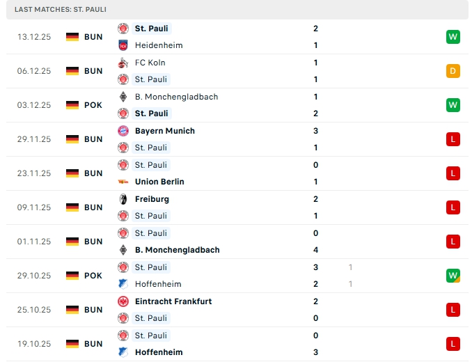 Phong độ thi đấu gần đây Mainz vs St. Pauli