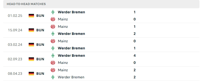 Quá khứ đối đầu Mainz vs Werder Bremen