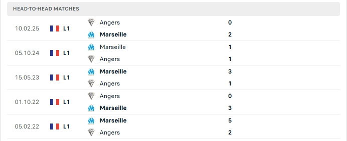 Những màn đụng độ giữa Marseille và Angers thường diễn ra hấp dẫn với nhiều bàn thắng được tạo ra, 3/5 lần gần nhất gặp nhau gần nhất và 3/5 lần đón tiếp Angers trên sân nhà của Marseille khép lại từ 3 bàn trở lên.