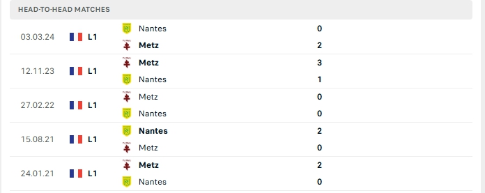 Những màn đụng độ giữa Nantes và Metz thường diễn ra chặt chẻ với ít bàn thắng được tạo ra, cụ thể ở 4/5 lần gặp nhau gần nhất của hai đội và cả 5 lần đón tiếp Metz trên sân của Nantes khép lại không quá 2 bàn, việc hàng công cả hai thi đấu không quá tốt khiến trận đấu diễn ra đầy khó khăn.