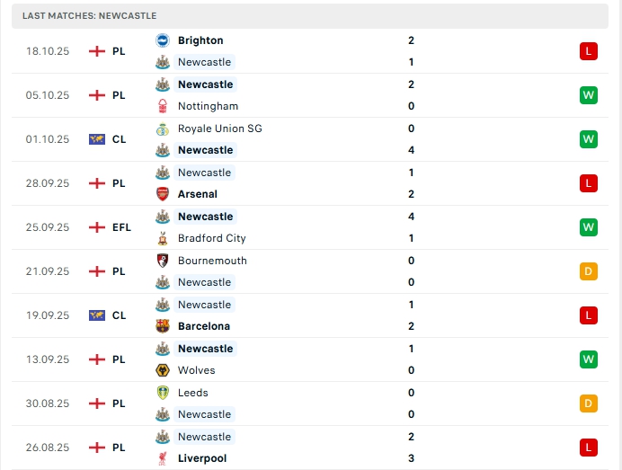 Phong độ thi đấu gần đây Newcastle vs Benfica