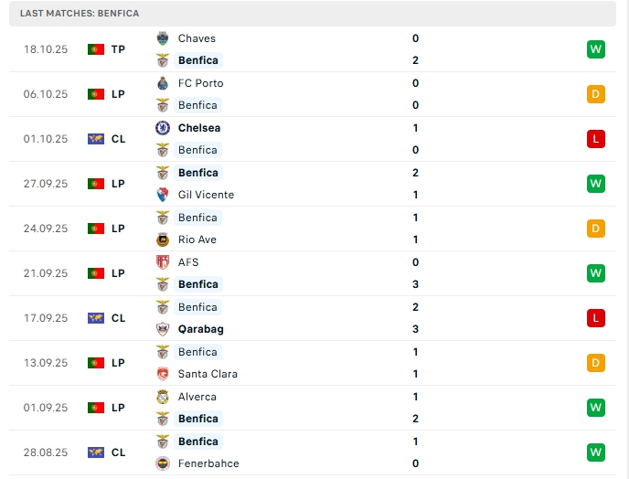 Benfica là đại diện đến từ Bồ Đào Nha, sau 2 trận đấu hàng công của họ mang về 2 bàn thắng nhưng hàng thủ chơi thiếu chắc chắn với 4 bàn thua phải nhận, việc hàng thủ chơi tệ khiến Benfica đối diện nhiều khó khăn khi hành quân đến Anh ở lượt trận thứ 3 sắp tới.