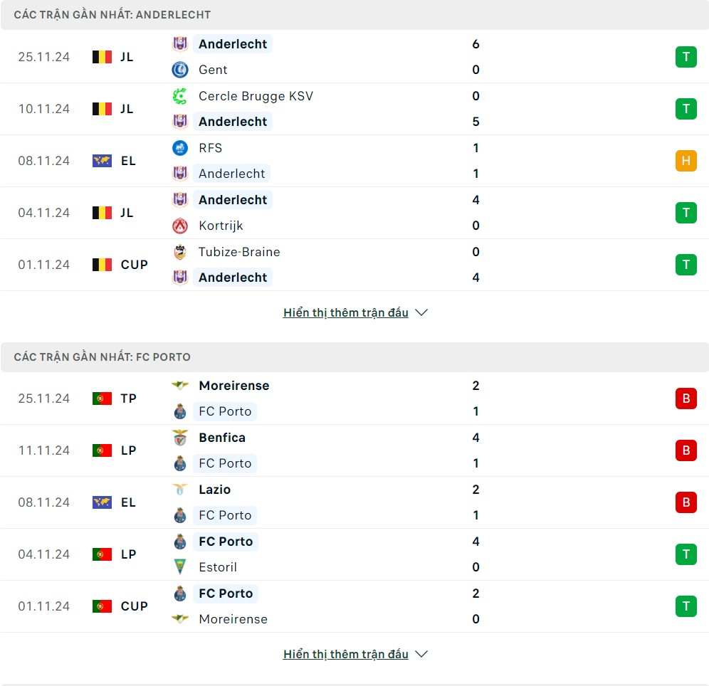 Thống kê phong độ gần đây & thành tích đối đầu Anderlecht vs Porto