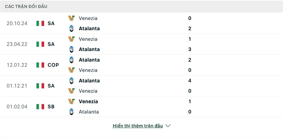 Thống kê phong độ gần đây & thành tích đối đầu Atalanta vs Venezia