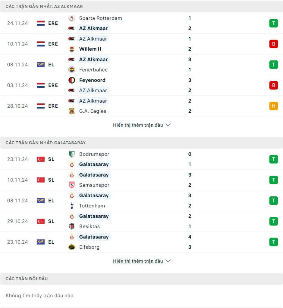 Thống kê phong độ gần đây & thành tích đối đầu AZ Alkmaar vs Galatasaray