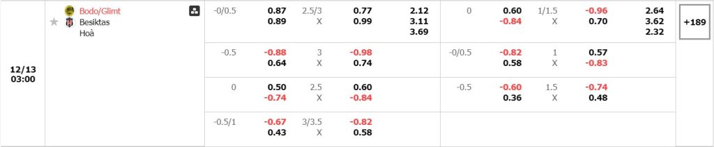 Bảng cập nhật tỷ lệ kèo nhà cái trận Bodo Glimt vs Besiktas