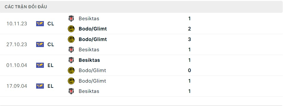 Trong quá khứ, Bodo Glimt và Besiktas đã gặp nhau 4 lần và cán cân đang nghiên đôi chút về đại diện Na Uy với 2 chiến thắng, hai đội hòa nhau 1 lần và đội bóng tới từ Super Lig chỉ có 1 lần ca khúc khải hoàn. Có thể nói trong những mùa giải gần đây, Bodo Glimt đã thu hẹp đáng kể khoảng cách với sân chơi châu lục và cả 2 chiến thắng của đội bóng này trước Besiktas đều diễn ra tại vòng bảng Conference League mùa giải năm ngoái.