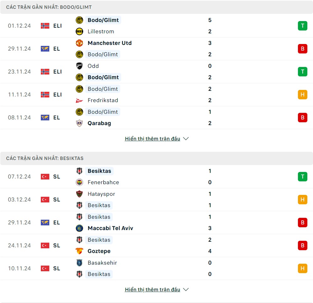 Thống kê phong độ gần đây & thành tích đối đầu Bodo Glimt vs Besiktas
