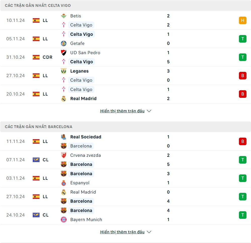 Thống kê phong độ gần đây & thành tích đối đầu Celta Vigo vs Barcelona