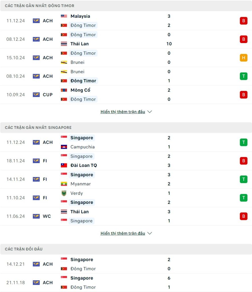 Thống kê phong độ gần đây & thành tích đối đầu Đông Timor vs Singapore