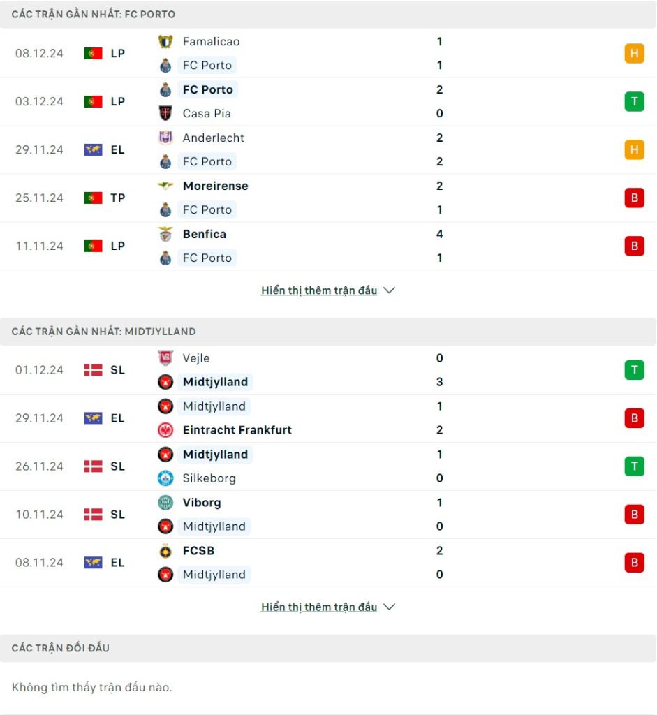 Thống kê phong độ gần đây & thành tích đối đầu FC Porto vs Midtjylland