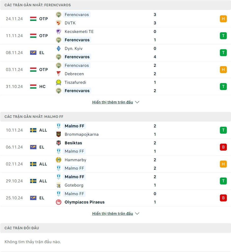 Thống kê phong độ gần đây & thành tích đối đầu Ferencvaros vs Malmo FF