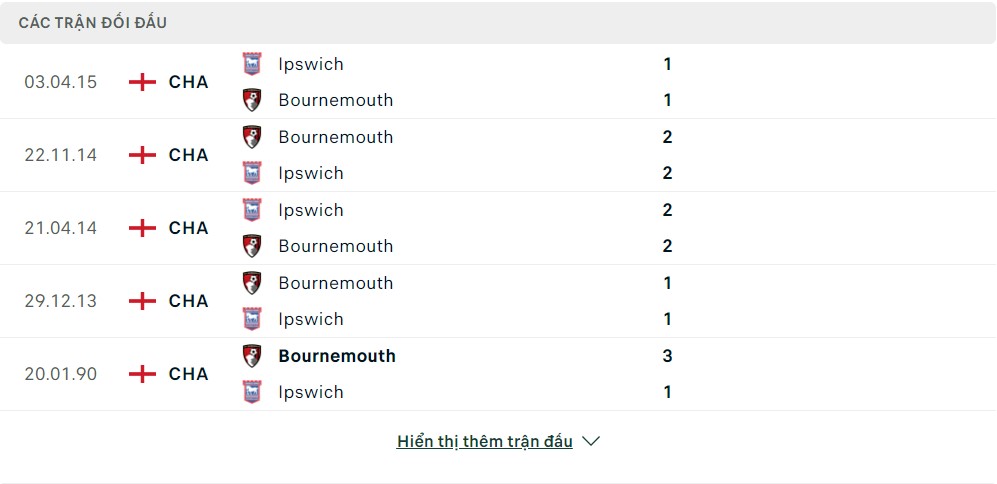 Thống kê phong độ gần đây & thành tích đối đầu Ipswich vs Bournemouth