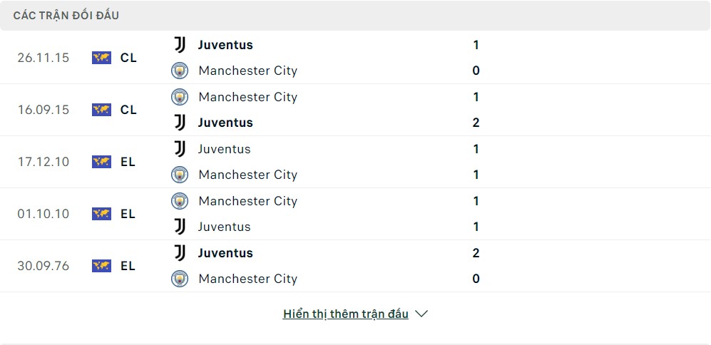 - Juventus 1 – 1 Manchester City (Cả trận)