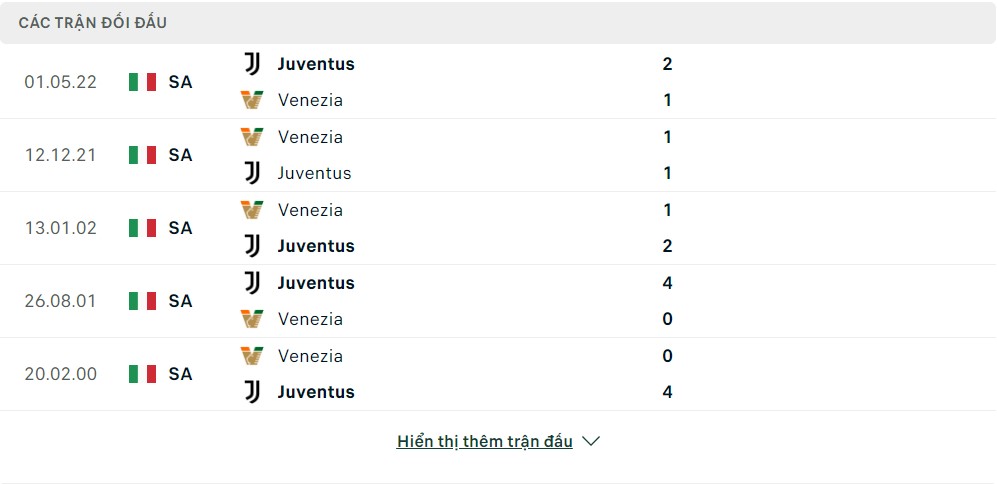 Ngoài điểm tựa sân nhà, Juventus còn đang nhận được sự ủng hộ tuyệt đối từ lịch sử. Thống kê này chẳng có gì bất ngờ khi đại diện thành Turin vừa mạnh hơn về chất lượng đội hình, lại áp đảo hoàn toàn về truyền thống. 10 lần gặp nhau gần nhất, Venezia chưa một lần ca khúc khải hoàn và phải nhận 6 thất bại.
