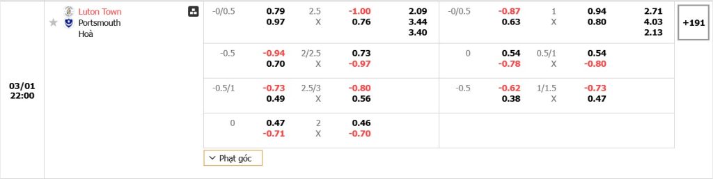 Tỷ lệ kèo châu Âu đánh giá khá cao khả năng chiến thắng của Luton Town. Tuy nhiên Portsmouth đang cho thấy sự ổn định đáng kinh ngạc và có được tâm lý tốt hơn sau 3 chiến thắng liên tiếp vừa qua. Kết quả hòa phản ánh đúng màn trình diễn của hai đội từ đầu mùa.