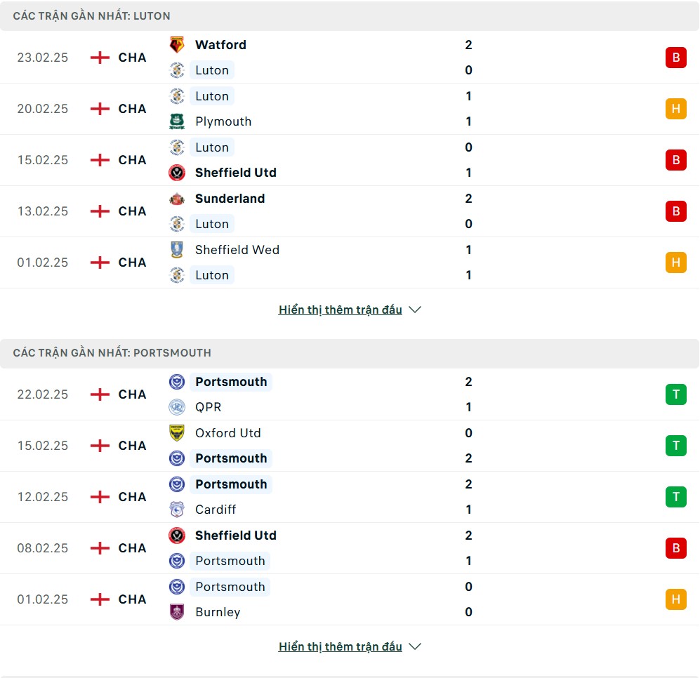 Thống kê phong độ gần đây & thành tích đối đầu Luton Town vs Portsmouth