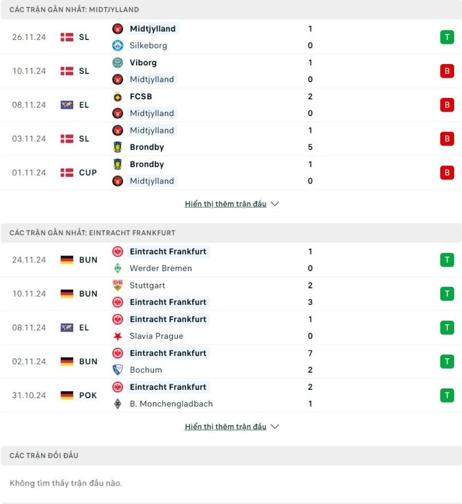 Thống kê phong độ gần đây & thành tích đối đầu Midtjylland vs Eintracht Frankfurt