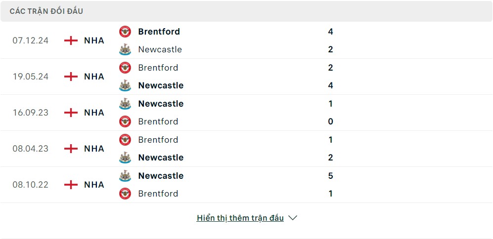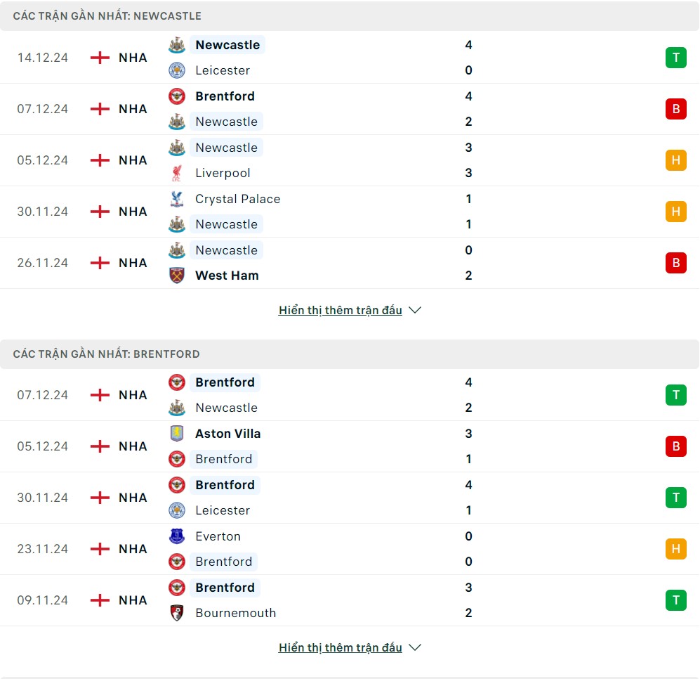 Thống kê phong độ gần đây & thành tích đối đầu Newcastle vs Brentford